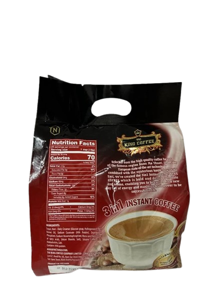 قهوه فوری سه در یک کینگ کافی ترکیبی آماده و سریع از قهوه، شکر و شیر خشک است که تجربهای شیرین، ملایم و خوشطعم از قهوه فراهم میکند. بسته ۲۰ عددی این محصول مناسب مصرف روزانه، محل کار یا سفر است.